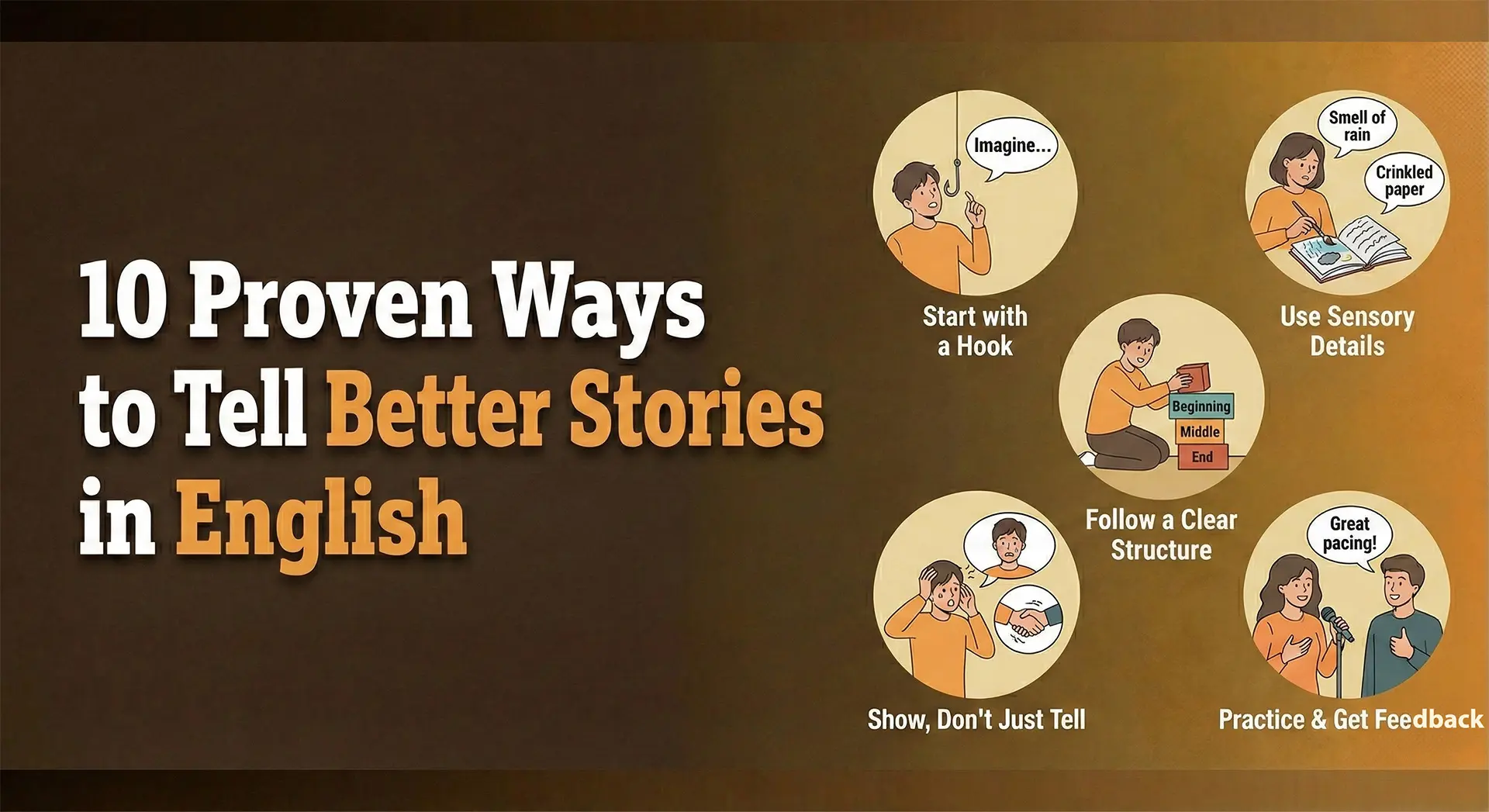 By the end of this blog, you’ll discover 10 easy storytelling techniques for English learners that will help you sound more like a native speaker. Whether you’re chatting with friends, giving a presentation, or writing an essay, these narrative techniques will transform the way you use English.