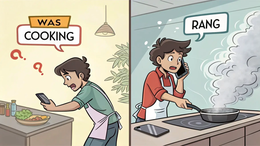 Think about it this way. If I say “I eat breakfast when the phone rings,” that sounds weird, right? But “I was eating breakfast when the phone rang” makes perfect sense. The difference? Proper storytelling tenses in English guide your listener through time.
