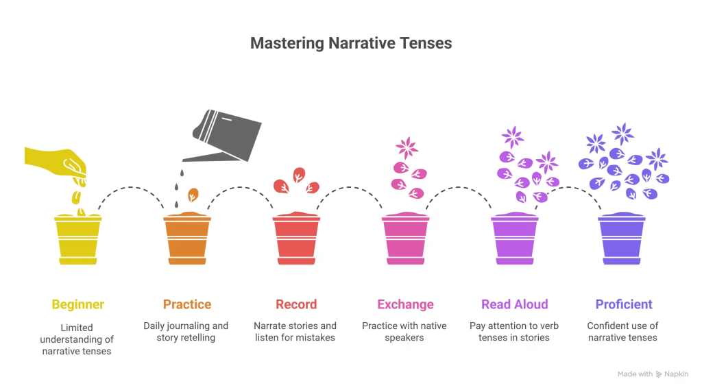 Fix: Practice by narrating short stories (1–2 minutes) and record yourself. Listen for tense changes. Are they intentional? Do they serve a purpose? This self-correction builds awareness faster than any textbook exercise.