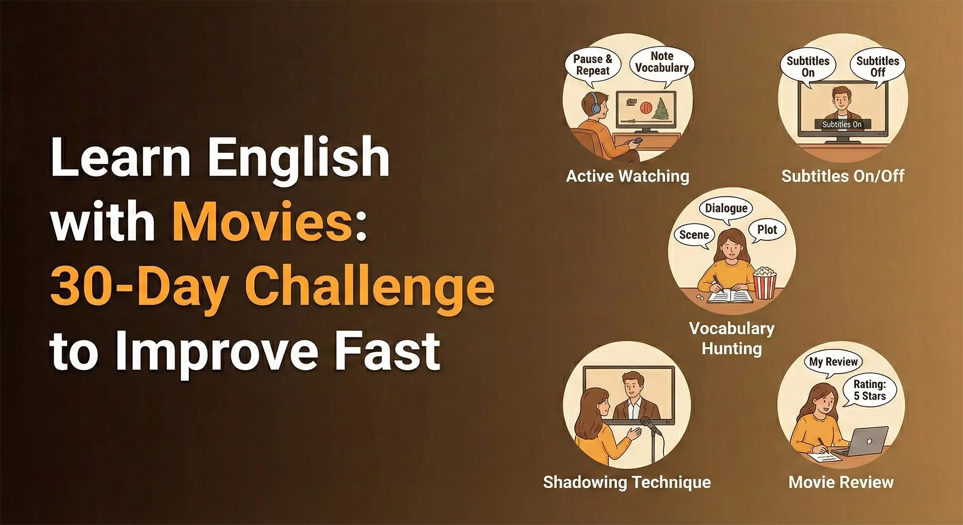 In this blog, I’m sharing a 30-day movie challenge that helps you build vocabulary, improve listening, and even practice speaking out loud. By the end of this plan, you’ll feel more confident using everyday English phrases in real life.
